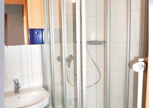 TOP: modernes Badezimmer mit Dusche und Waschmaschinenanschluss