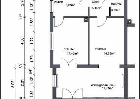 In dieser Wohnung ist ein heller Wohn- und Wintergartenbereich. Der Wohnbereich ist mit einer Fußbodenheizung ausgestattet und ist mit dem großen beheizten Wintergarten verbinden.