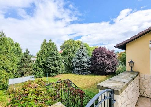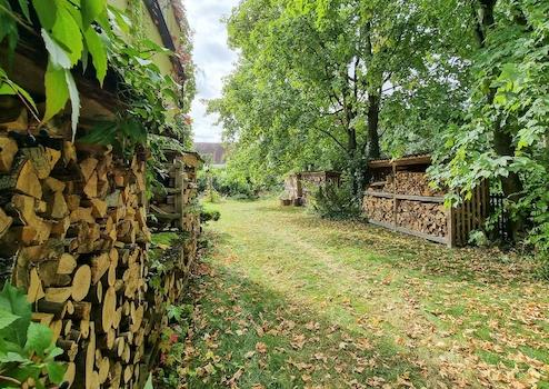 Das großzügige Wohnzimmer besticht durch einen Kamin und einen direkten Zugang zur großen in Richtung Westen ausgerichteten Terrasse (43,91 m²), die mit einer Markise ausgestattet ist. Über eine Außentreppe gelangt man in den 244 m² Gartenbereich der den zukünftigen Eigentümern zur Verfügung steht. Durch die frei nutzbaren Nebenflächen vergrößert sich dieser Anteil nochmal.