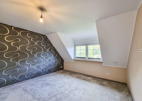 Im Dachgeschoss finden Sie zwei helle und gut geschnittene Räume, die vielseitig genutzt werden können. Das Schlafzimmer beinhaltet zudem ein begehbares Ankleidezimmer. Das Tageslichtbad ist mit einer ebenerdigen Dusche, einer Badewanne und einem formschönen Waschbecken mit Unterschrank ausgestattet. Es bietet eine perfekte Ergänzung für das Wohnkonzept der oberen Etage.