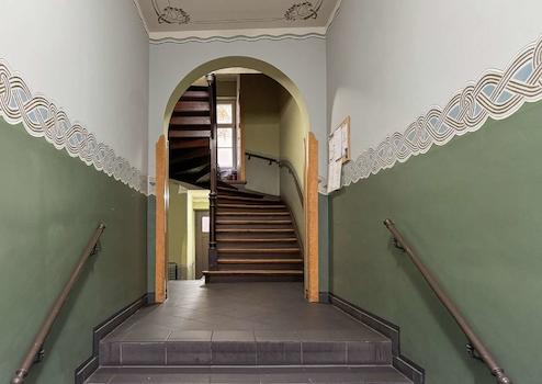 Diese großzügige 3-Zimmer-Wohnung im Erdgeschoss eines historischen Mehrfamilienhauses mit nur vier Parteien verbindet klassisches Altbauflair mit einem sehr gepflegten Wohnambiente. Das Gebäude wurde 2007 umfassend saniert und präsentiert sich heute in sehr gepflegtem Zustand. Schon das stilvoll erhaltene Treppenhaus mit seiner eindrucksvollen Holztreppe und den charmanten Altbautüren vermittelt den einladenden Charakter des Hauses. Nur wenige Stufen führen Sie direkt zur Wohnung.