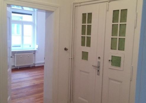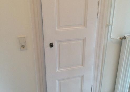 Alle altbautypischen Kassettentüren abgeschliffen und lackiert in weissem Glanzlack. Speisekammern renoviert.