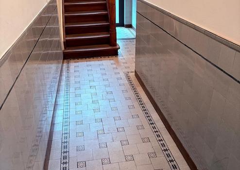 In allen Wohnungen sämtliche Bodenbeläge freigelegt, abgeschliffen und versiegelt. Sämtliche Wandbeläge in allen Wohnungen erneuert, mit Malervlies angelegt.