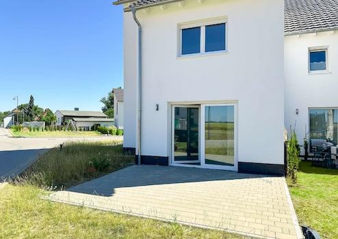 Dieses moderne Neubau-Reihenendhaus bietet rund 135 m² Wohnfläche auf einem etwa 375 m² großen Grundstück. Ein echtes Traumzuhause für Familien.