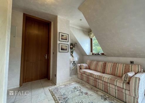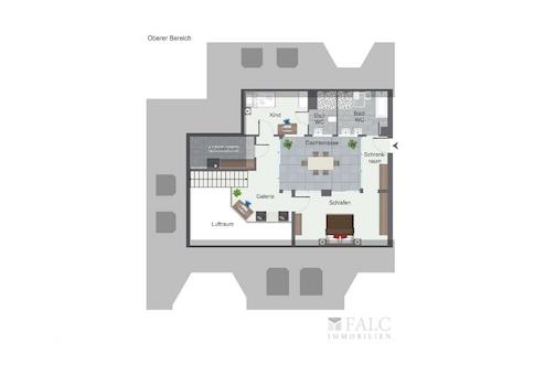 Auf der oberen Etage erwartet Sie ein Schlafzimmer mit eigenem Badezimmer, das idealen Komfort garantiert. Ein weiterer Schlafbereich mit eigenem Duschbad bietet Flexibilität für Gäste oder Familienmitglieder. Die Galerie dieser Ebene dient als vielseitiger Bereich, der sich hervorragend als Lese- oder Arbeitsraum nutzen lässt.