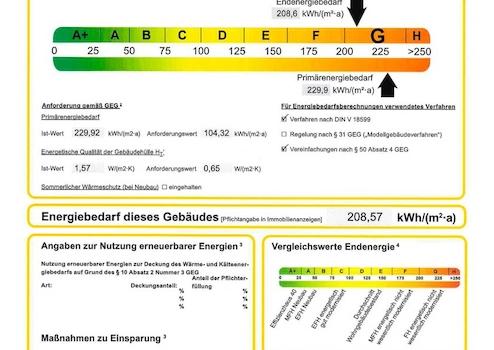 Der Energieausweis befindet sich in der Beauftragung durch den Eigentümer und wir bei dessen Eintreffen nachgereicht!