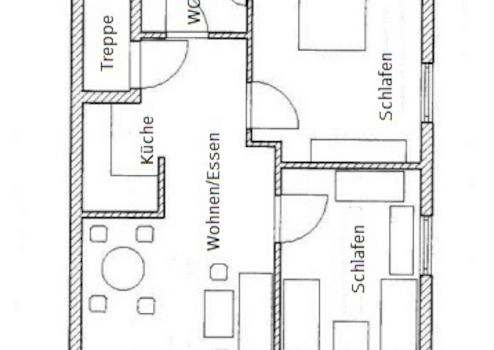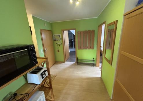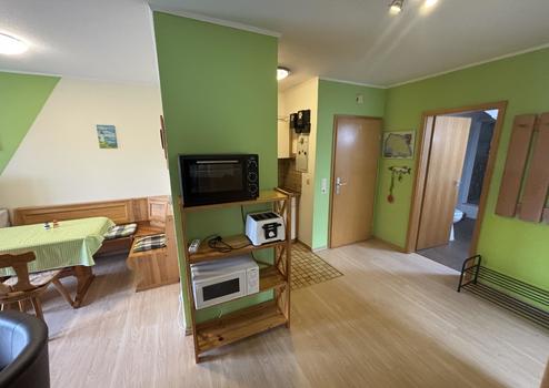 Die Wohnung ist komplett eingerichtet und ausgestattet. Die Küche verfügt über Zeranfeldherd, Spüle, Mikrowelle, Minibackofen und Kühlschrank, Dunstabzugshaube. In den Wohnbereichen ist Laminatbodenbelag vorhanden, der Küchenbereich und das Badezimmer sind gefliest.