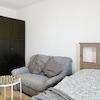 Im Schlafzimmer befinden sich ein komfortables Doppelbett sowie ein geräumiger Kleiderschrank, der ausreichend Stauraum bietet.