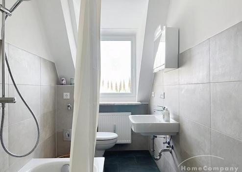 Das Tageslicht-Badezimmer verfügt über eine Badewanne und rundet den Wohnkomfort ab.