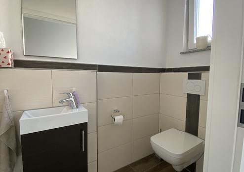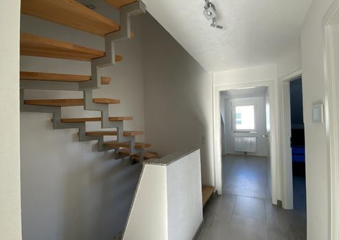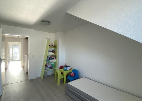 Das Ambiente ist hell und modern gestaltet. Es gibt im Erdgeschoss ein Gäste-WC mit Tageslicht, eine großzügige Diele mit Platz für Garderobe und Schuhschrank und einen offen Wohn-/Essbereich mit Einbauküche. Auf der Sonnenterrasse genießen Sie die warme Jahreszeit. Im Obergeschoss befinden sich das Badezimmer mit Einbaumöbel, zwei Kinderzimmer sowie das Schlafzimmer (mit Balkon). Zusätzlich gibt es im Dachgeschoss weitere Nutzfläche. Im Untergeschoss neben den Kellerräumen befindet sich außerdem ein großer Hobbyraum.