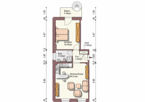 Auf rund 60 m² Wohnfläche verbindet sie historischen Charakter mit modernem Wohnkomfort und überzeugt durch ihre klare Raumaufteilung. Das Herzstück der Wohnung ist der große, helle Wohnbereich mit offener Küche.