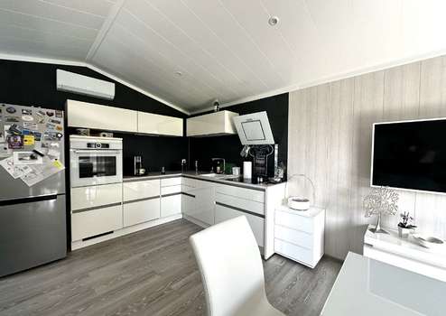 Dieses exklusive Mobilheim ist ein maßgeschneiderter Neubau aus September 2022 und bietet modernes Wohnen in einer ruhigen, naturnahen Umgebung. Auf einer Wohnfläche von 56 m² verteilen sich drei lichtdurchflutete und stilvoll gestaltete Zimmer.