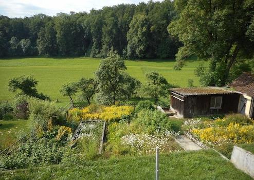 Der Naturgarten kann frei gestaltet werden. Optimal zum Obst- und Gemüseanbau, Kinder spielen lassen, Feste feiern etc.