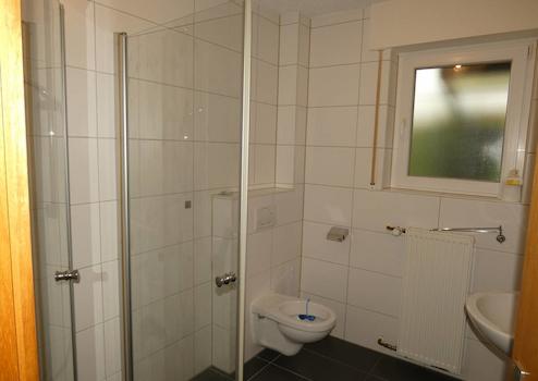 Beide Wohnungen verfügen über moderne Bäder mit ebenerdiger Dusche und Tageslichtfenstern.