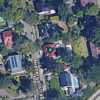 Das Grundstück verfügt über zwei straßenseitige Zufahrten; eine Einfahrt führt in die Tiefgarage des Hauskellers, die zweite Einfahrt führt auf den vorderseitigen Hof (zwei potentielle Pkw-Stellplätze) sowie zum ca. 11 Meter langen -beleuchteten- Carport. Links von der Villa steht ein ziegelgedeckter Holzunterstand, der Platz für fünf Mülltonnen bietet.