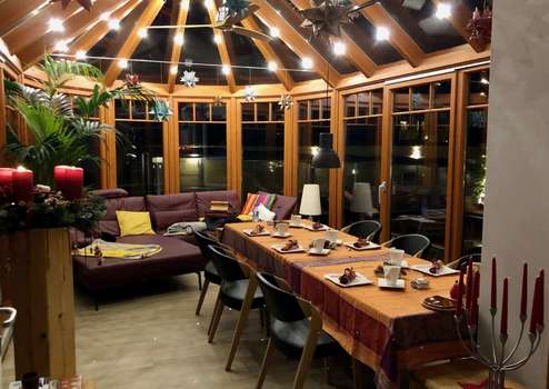 Die Villa erhielt auch einen etwa 25 qm großen, unterkellerten Warmwintergarten, ausgestattet mit Fußbodenheizung und einer hochwertigen Dakin-Klimaanlage (Heizen/Kühlen) .