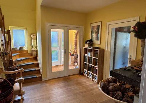 Das gesamte Objekt wurde ganz bewusst ausschließlich mit zweifach verglasten Holzfenstern ausgestattet, welche im Erdgeschoss mit Echtholzjalousien (im Erker mit Alu-Jalousien) ausgestattet sind.
