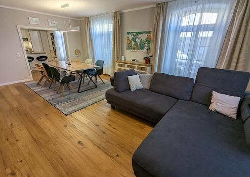 In einem denkmalgeschützten Haus präsentiert sich diese außergewöhnliche Eigentumswohnung mit einer Wohnfläche von ca. 161 m² auf einer Etage. Die gelungene Verbindung von historischem Charme und modernem Wohnkomfort macht dieses Objekt zu einer echten Rarität. Die Wohnung bestand in der Vergangenheit aus zwei Einheiten, sodass sie bei Interesse auch wieder getrennt werden könnte.