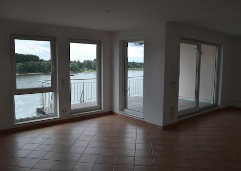 Die Wohnung ist hochwertig ausgestattet (bspw. elektrische Jalousien, umfangreiche Hifi-Verkabelung) und verfügt, neben 3 Zimmern, Küche, Diele und Tageslicht-Bad (mit Dusche und Badewanne), über ein separates Gäste-WC und einen Abstellraum. Der Balkon zum Rhein ist 15 qm groß.