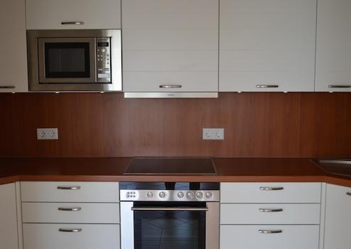 Die hochwertige Einbauküche inkl. Deckenbeleuchtung, die Deckenbeleuchtung und Regalausstattung des Abstellraums, die Plissees in Elternschlaf- und Kinderzimmer, die Badezimmermöblierung inkl. Lautsprecher, der Spiegel mit Beleuchtung im Gäste-WC sowie die Deckenbeleuchtung und Regalausstattung des Kellerraumes, sind bereits im monatlichen Mietpreis enthalten.