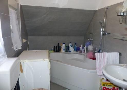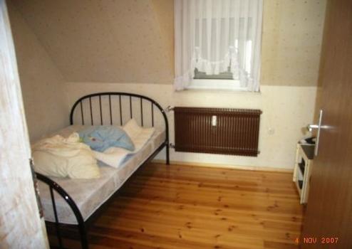 Obergeschoß: Wohnzimmer (Parkett), Kachelofen - nur mit Holz beschürbar, keine Kohle), Eßecke (Parkett), Küche (PVC), Wintergarten (Holzdielen), Büro (Korkboden), Gäste-WC (Fliesen), DG+OG Wfl. 133,70 m²bisher vermietet 750 € + NK 350 €
