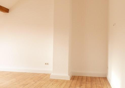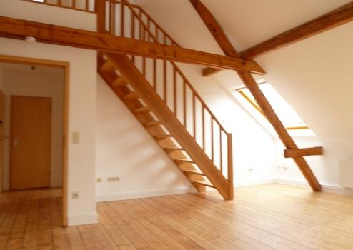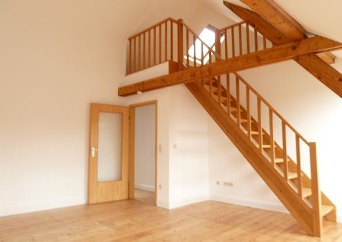 Die Wohnung befindet sich im Dachgeschoß eines sanierten Altbaus aus der Jahrhundertwende mit angenehmer Mieterstruktur. Sie verfügt über ein sehr großes und hohes Wohnzimmer mit einem Zugang zu einer Empore über eine Treppe, einem weiteren Zimmer, Küche, Diele und Bad. Die Empore kann als Schlafbereich genutzt werden. Die Wohnung hat damit Maisonette-Charakter.