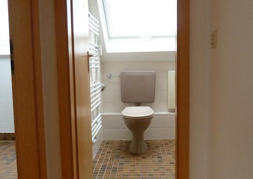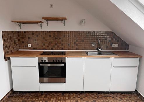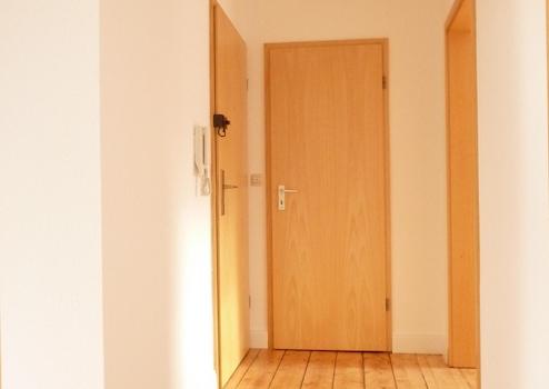 Die hohen Räume vermitteln Altbaucharme, der durch die abgeschliffenen Holzdielenböden unterstrichen wird. Die Wohnung verfügt über helle Naturholztüren und neue Dachflächenfenster. Das Bad mit Dusche und Fenster ist hell gekachelt und mit nussbraunen Objekten ausgestattet. Auch der Boden und der Arbeitsbereich in der Küche sind gefliest. Die Warmwasserbereitung erfolgt über Durchlauferhitzer bzw. Warmwassergerät. Die Wände sind mit Rauhfaser weiß gestrichen und damit bezugsfertig renoviert. Die Elektroausstattung ist als überdurchschnittlich einschließlich Breitbandanschluß und Sprechanlage anzusehen.