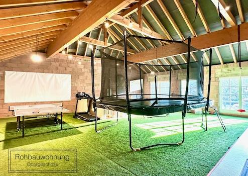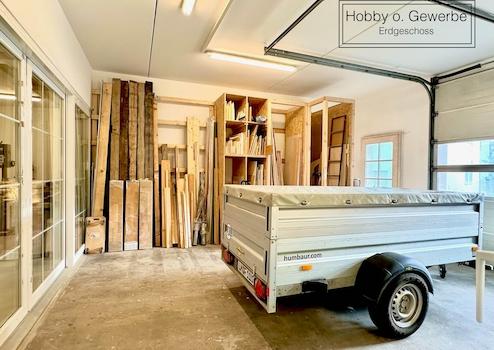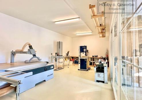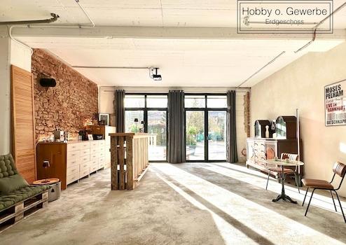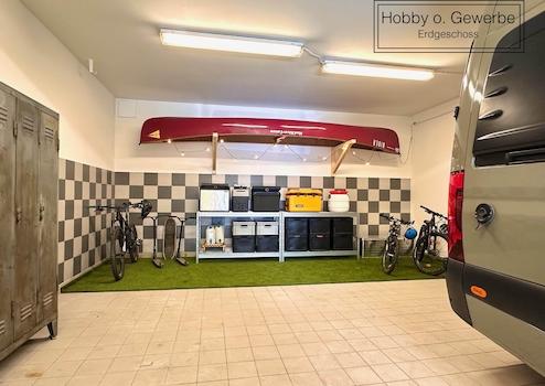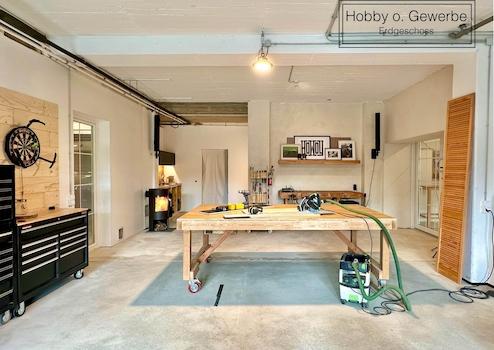 Die Hallen im Erdgeschoss wurden vor dem Umbau als Gewerbeeinheit genutzt und dienen aktuell als Hobbywerkstatt.