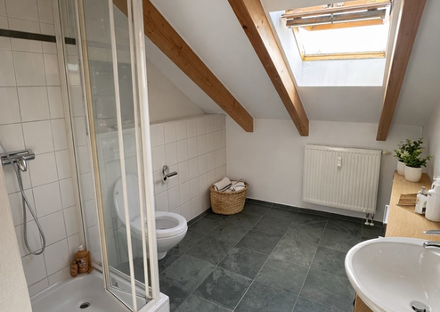 - 2 Badezimmer, eins mit Badewanne und Dusche (1OG), das andere mit Dusche (DG)