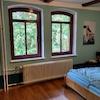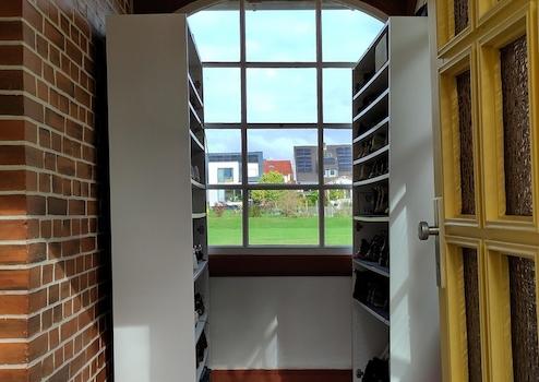 Die vorderen zwei Zimmer sind mit einem vergrößerten Durchgang verbunden und im Obergeschoss wurde das Fachwerk freigelegt, um mehr Raum zu schaffen. Durch den innenliegenden Fachwerkaufbau lässt sich die Wand schnell wieder schließen oder es kann einfach wieder eine Tür eingebaut werden. Ist geschlossener Raum gewünscht, kann zum Wohnungsflur eine Tür eingebaut werden.
