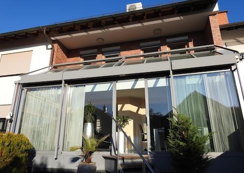 Der Wintergarten von FW Glas-Haus wir per vollautomatischer Steuerung von oben und vorne beschattet. Somit wird es im Sommer nicht zu heiß und im Winter schauen Sie mit gewärmten Füssen in den schönen Garten.