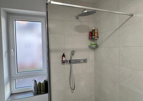 Bodengleiche Dusche mit einer Badewanne sowie zusätzlich ein Gästebad mit WC und Dusche