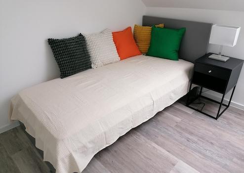 Alle Zimmer sind mit Einzelbetten, Nachttisch, Kleiderschrank, teilweise Sessel, Tisch und 2 Stühle, Deckenleuchte, teilweise Deckenfluter und Nachtischlampe ausgestattet. Bettwäsche, Handtücher, Bettdecken, Kopfkissen sind nicht vorhanden!