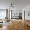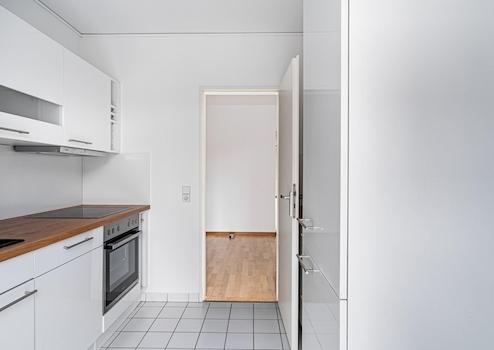 Der lichtdurchflutete Wohnbereich mit direktem Zugang zur sonnigen Süd-Balkonterrasse bildet das Herzstück der Wohnung. Hochwertiger Parkettboden, neu geschliffen und versiegelt, verleiht den Räumen eine elegante Atmosphäre. Die neue Einbauküche sowie das sanierte Badezimmer mit moderner Dusche unterstreichen den gehobenen Wohnkomfort.
