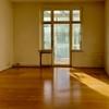 Im Hochparterre befinden sich 2 Zimmer, eine Küche und ein kleines Bad. Vom größeren Zimmer gelangen sie in den Wintergarten, auf den kleinen Balkon und in den Garten.