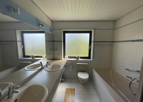 Das Badezimmer verfügt über alles, was man braucht: Dusche, Badewanne, 2 Waschbecken. Es wurde um das Jahr 2010 modernisiert.