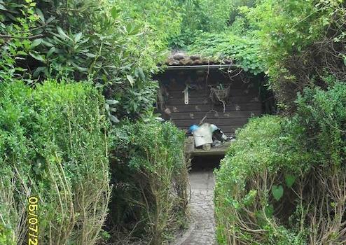 Die Wege ermöglichen ein Rundgang durch den Garten ohne einen Weg doppelt zu gehen. Es befindet sich auch eine gepflasterte Fläche als Schachbrett.