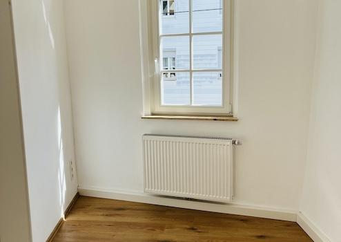 Durch ein von nur einer weiteren Partei genutztes Treppenhaus gelangen Sie ins 1. OG. Dort befindet sich die eigentliche Wohnung. In dem Tageslichtbad mit Badewanne und Handtuchheizung finden Sie moderne Einbauschränke. Gegenüber vom Bad befindet sich ein kleines, aber sehr helles Zimmer, das sich ideal als HomeOffice oder kleines Kinderzimmer anbietet. Daneben finden Sie eine moderne Einbauküche mit Fenster und pflegeleichtem Fliesenboden und allen erforderlichen Elektrogeräten. Die Wohnung wird abgerundet durch zwei große, sonnige Zimmer mit historischem Holzboden. Die Fenster können mit Fensterläden verdunkelt werden.