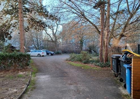 Auf dem abgeschlossenen Hof vom Grundstück der Wohnanlage können, je nach Verfügbarkeit, Parkplätze angemietet werden.