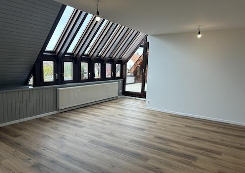 Herzstück der Wohnung ist der lichtdurchflutete Wohn- und Essbereich, der durch den direkten Zugang zur großen Dachterrasse besticht – ein idealer Ort zum Entspannen und Genießen.