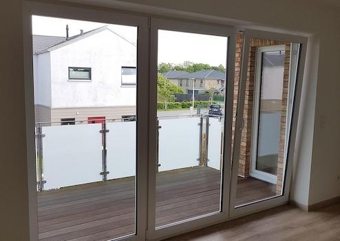 Die Wohnung befindet sich im Obergeschoss eines neuwertigen, gehobenen 6-Parteien-Mehrfamilienhaus, Baujahr 2016, in einem Neubaugebiet in ruhiger aber zentraler Lage von Husum. Eine Stadtvilla mit zwei Vollgeschossen, die in Massivbauweise und KfW-55-Standard hergestellt wurde. Das Haus besteht aus 3 Hausscheiben, je eine Wohnung im EG und eine Wohnung im OG teilen sich ein Treppenhaus. Jede Wohnung verfügt über eine eigene Sole-Wärmepumpe (Erdwärme) mit sehr geringen Verbrauchskosten (ca. 35€/Monat f. Strom) sowie einer Sensor-gesteuerten Lüftungsanlage.