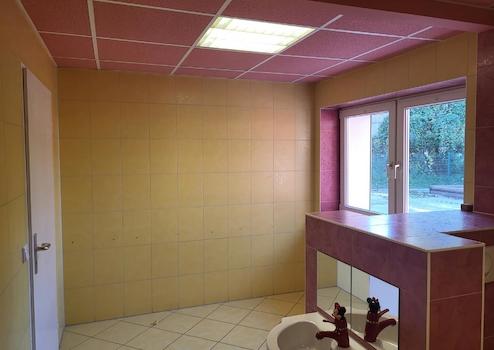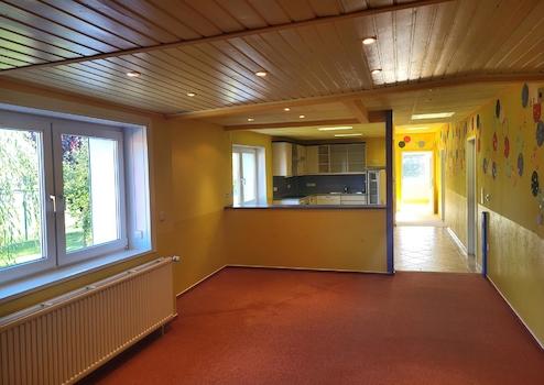 Beim Betreten erwartet Sie ein großzügiges Raumkonzept mit viel Gestaltungsspielraum, das Ihnen die Freiheit gibt, Ihre Praxis ganz nach Ihren individuellen Vorstellungen zu realisieren. Der helle Hauptbereich eignet sich hervorragend als einladender Empfang mit Wartezone und öffnet sich harmonisch zur grünen Gartenidylle. Innen- und Außenbereich gehen hier fließend ineinander über und schaffen eine Atmosphäre der Ruhe und Entspannung.