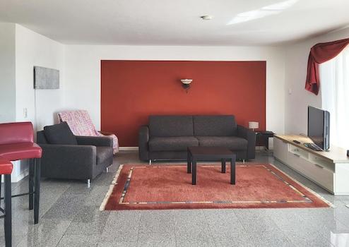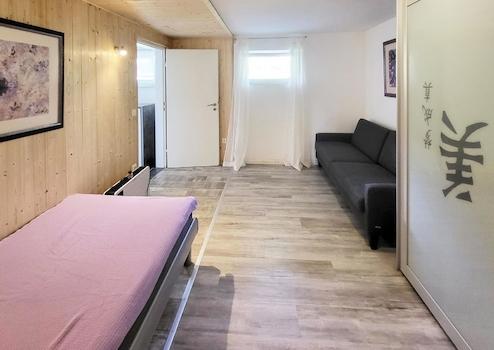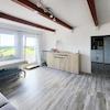 Im Obergeschoss befindet sich ein Appartement mit hellem Wohnbereich, kleinem Küchenbereich, einem durch Trennwand abgeteilten Raum und einer einzigartigen Dachterrasse. Mit etwas handwerklichem Geschick lässt sich dieses Appartement wieder in neuem Glanz erstrahlen.