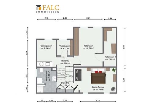 - Keller: 3 Kellerräume, Heizugsraum, Gäste-Zimmer sowie Badezimmer mit Waschmaschinenanschluss