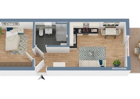 Das offene Wohnkonzept schafft ein helles, einladendes Ambiente – perfekt für Paare oder Singles, die modernes Wohnen schätzen. Der offene Wohn- und Kochbereich bildet das Herzstück der Wohnung. Eine hochwertige Einbauküche (bereits enthalten) und viel Tageslicht sorgen für ein freundliches Wohnambiente und vielfältige Gestaltungsmöglichkeiten.
