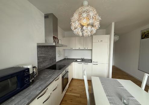 Genießen Sie den Tag mit einem Frühstück auf dem Balkon, während die Morgensonne die Stadt erhellt. Der offene Wohn- und Essbereich bietet Platz für gesellige Abende oder ruhige Stunden zu zweit. Die moderne Küche ist bereit für kulinarische Abenteuer und sorgt dafür, dass Sie sich sofort wie zu Hause fühlen.