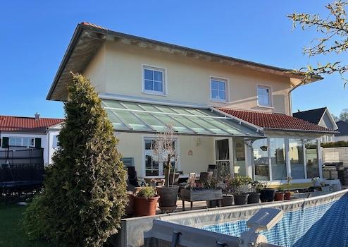 Zum Verkauf steht ein hochwertiges Einfamilienhaus aus dem Jahr 2016 in bester Lage. Auf zwei Vollgeschossen erwarten Sie ca. 160 m² Wohnfläche, verteilt auf 4 Schlafzimmer, 3 Bäder und Büro plus Wintergarten - ideal für Familien und anspruchsvolle Wohnkonzepte. Darüber hinaus gibt es eine großzügige, überdachte Terrasse inklusive Sonnenschutz.