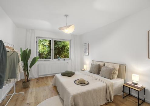 85 m² Wohnfläche, 4 Zimmer, 2 Bäder, Stellplatz, Sondernutzungsrecht Garten – bezugsfrei & provisionsfrei.
