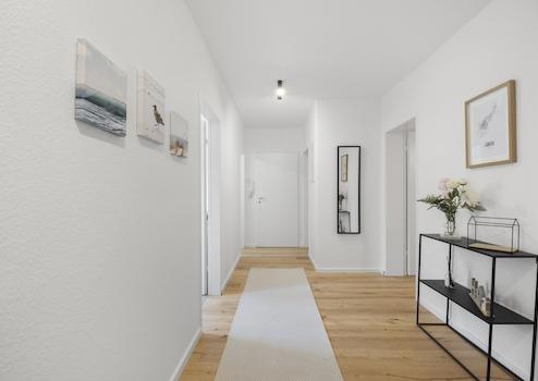 Bereits beim Betreten der Wohnung empfängt Sie ein heller, großzügiger Flur, von dem aus alle Räume komfortabel erreichbar sind: