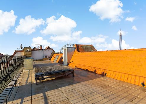 Die lichtdurchfluteten Räume und die großen Fenster verwöhnen mit einer perfekten Wohlfühlgrundlage. Auch die Klimaanlage sowie die private ca.60 m² große Dachterrasse, auf welcher Sie tolle Abende mit Freunden verbringen und Sonnenuntergänge neben den Hausmannstürmen genießen können, bieten zusätzlichen Wohnkomfort. Übrigens wartet hier auch schon eine hochwertig ausgestattete Einbauküche auf Kochabenteuer!